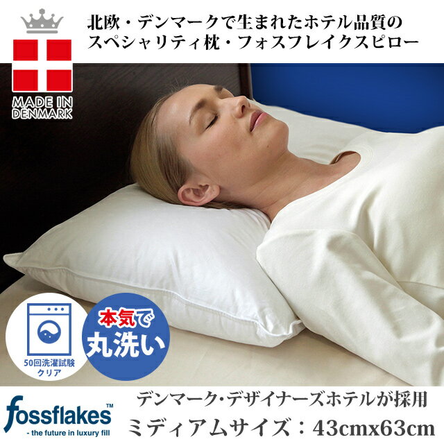 詰め物の中に含まれているフォスフレイクスは、デンマークで生まれたユニークな素材で樹脂をフレイク状にしたもの。フォスフレイクスは素材が自由に動くので、頭を乗せた瞬間にご自身の頭の形になじみ、首筋とふとんの隙間もしっかり埋めてくれるので頚椎をやさしくサポートし、熟睡へと導いてくれます。朝起きたら、枕の四隅をパンパンと叩いて空気を入れてあげるとふんわり。また、耐久性に優れ、ご家庭の洗濯機で洗えるので、いつも衛生的にご使用いただけます。洗濯機の水温、乾燥機の温度ともに60℃まで(洗濯機によっては寝具洗いに対応しない機種もあるので、お手持ちの洗濯機の商品説明書をご確認ください。対応しない場合は手洗い、またはコインランドリーをおすすめします)。 商品の仕様 サイズ:43x63cm 組成:側地:綿100%中材:ポリエステル100%(フォスフレイクスTM70%、ポリエステルつぶ綿30%) 充填物量(約):フォスフレイクスTM:385g、ポリエステルつぶ綿:165g 原産国:デンマーク ※篠原化学はfossflakesの日本正規代理店です。 ※動画の枕についてはパイピングの色が違います