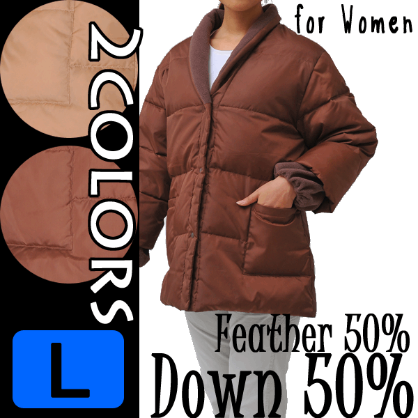 商品詳細 カラー ベージュ、ブラウン サイズ(M−L) バスト:79〜94cm 肩幅:40cm 袖丈:43cm 着丈:68cm 重さ:約345g サイズ(L−LL) バスト:86〜101cm 肩幅:44cm 袖丈:44cm 着丈:72cm 重さ:約363g 素材 側地=ポリエステル100%、詰物=ダウン50%・フェザー50% 洗濯 手洗い可 お願い 在庫数の更新は随時行っておりますが、お買い上げいただいた商品が、品切れになってしまうこともございます。 その場合、お客様には必ず連絡をいたしますが、万が一入荷予定がない場合は、キャンセルさせていただく場合もございますことをあらかじめご了承ください。