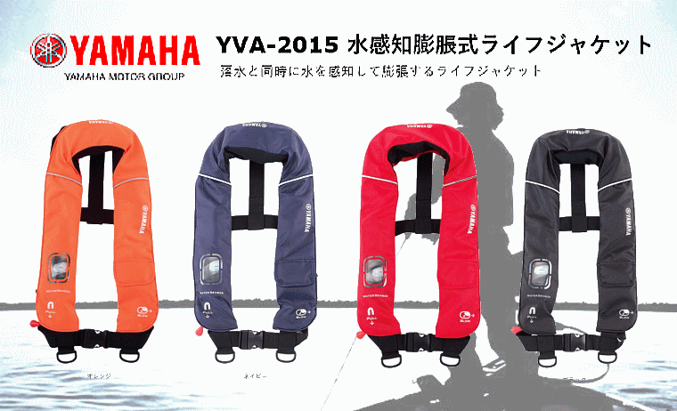 ※ワイズギア社の救命品ページにて、各膨張式救命胴衣の膨張等の動画があり、膨張の感じを見ることが可能です。リンクが貼れませんので、ヤフー等検索エンジンにて、キーワード:ワイズギア 救命品 で検索し、救命品 - マリン用品 | ヤマハ発動機グループ ワイズギア ページ に入り、各商品のページにお進みください。ヤマハYVA-2015専用取替ボンベセットはこちら ◆ 警告 ◆日本国内において、正式に「救命胴衣」「ライフジャケット」と表記できるのは、国土交通省承認品のみです。これは、海の安全を基本とする国内マリン業界内では常識です。国土交通省承認品以外のフローティングベスト等を「救命胴衣」「ライフジャケット」と表記して販売している無責任で常識が無い店舗や商品には、くれぐれもご注意ください。※通常の納期につきましては、下記をご参考にしてください。※お急ぎの際は、都度、お問い合わせいただくか、ご注文時に配達日時指定からお伝えください。※この商品は、航空便搭載不可の為、北海道・沖縄県への配送は陸便(船便)となり、配達まで通常より2?3日程度お時間が必要になります。予めご了承ください。 ヤマハ・ワイズギア 膨張式救命胴衣 メンテナンス・YM2420R・YM005・YM003・YM2300・YM006等、ベストタイプのご使用前準備・点検方法 ・YM5100・YM5200・YM020・YM021等、ウエストポーチ・ウエストベルトタイプのご使用前準備・点検方法 ・YM2420R・ YM005・YM003・YM2300・YM006等、ベストタイプの着用方法・ YM5100・YM5200・YM020・YM021等、ウエストベルト・ウエストポーチタイプの着用方法・ボンベ交換方法・YM005自動膨張式ボンベ交換後の折りたたみ方法・YM2300・YM003・YM006等、手動膨張式ボンベ交換後の折りたたみ方法・YM5100・YM5200等、ウエストベルトタイプボンベ交換後の折りたたみ方法・YM020・021等、ウエストポーチタイプボンベ交換後の折りたたみ方法・保管方法・定期点検について※救命胴衣承認・タイプ等について詳しくはこちらのページ※船舶検査について詳しくは→日本小型船舶検査機構 JCI※マリンレジャーの安全について→海上保安庁マリンレジャー トップ錨屋(いかりや)は、厳選良品のみ取扱い!スタッフ一同、一所懸命に対応させていただきます!ヤマハ自動膨張式救命胴衣YVA-2015 ライフラフトジャケットYAMAHA YVA-2015 ダブルセンサー付き 水感知式膨張式ライフジャケット国土交通省承認 救命胴衣【着用推進セ?ル開催中】ヤマハ YVA-2015 詳細ヤマハYVA-2015は、自動膨張機能装備の膨張式救命胴衣です。桜マーク取得の国土交通省承認品です。安全性を更に向上させるダブルインジケーターによるボンベ確認の目視が可能です。汚れることがあるカバーは、膨張部から取り外し式なので、カバーの洗濯が可能です。ボンベ&センサースプールは交換が可能です。何度でもご使用可能です。※数日に及ぶ長時間の漂流で膨張部の空気が減ってきても、口で吹き込みエアー充填可能です。泳げない方、泳ぎに自信が無い方、ご高齢の方等は、御身自身の安全と安心の為、厳しいテストに合格した国土交通省承認品の自動膨張式ライフジャケットをご着用くださいませ。■国土交通省【小型船舶用膨張式救命胴衣】承認品 法定安全備品:タイプA■国土交通省承認番号:第5033号■全体重量:590g■初期浮力:9.7kg以上■対応ウエスト:70cm?100cm※ベルト全長:120cm/錨屋実測・バックル含む■膨脹装置:UML社製■使用ガス:炭酸ガス■笛付属■ヤマハオリジナルヤマハYVA-2015 膨張イメージ・構造更に安全性を向上!カバー窓から目視確認可能なダブルインジケーター新膨張装置!カバーを取り外して洗濯可能!イメージYVA2015のカラーは、4カラー! 着用イメージ